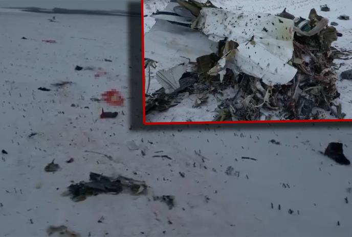 Na snimku se vidi kako istražitelji mere nešto što se čini kao krvavu ljudsku ruku i raskomadano telo. Na drugim snimcima iz vazduha vide se mesto pada i ostaci aviona. Nejasno je da li su ljudski ostaci na snimku na istoj lokaciji kao i ostaci aviona.
