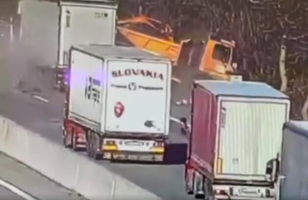 Naime, vidi se da vozač kamiona nije uopšte reagovao na veliki znak, koji je pokazivao da je zabranjeno voziti tim delom trake.