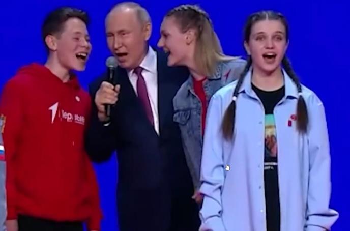 Deca su počela da pevaju himnu na sceni, a ruski lider je naizmenično davao mikrofon učesnicima, a potom se i sam pridružio horu dečijih glasova rečima "moćna volja, velika slava".