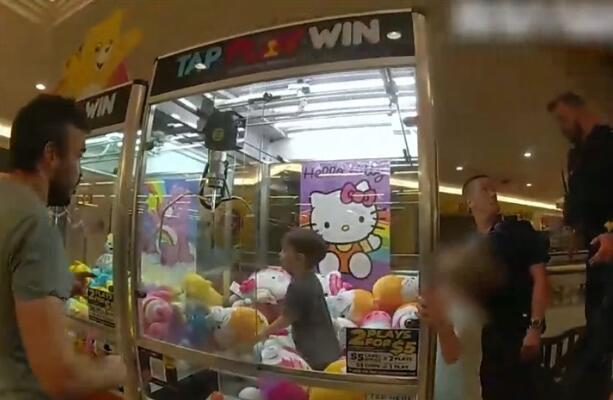 Trogodišnjeg dečaka koji je sa roditeljima posetio tržni centar, privukao je aparat za igračke sa kandžom. Uspeo je da nađe način da uđe u aparat i našao se u staklenom prostoru punom igračaka.