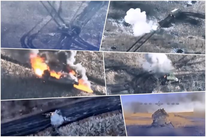 U tom trenutku stižu ukrajinski dronovi koji onesposobljavaju i druge tenkove, dok njihove posade pokušavaju da spasu žive glave.