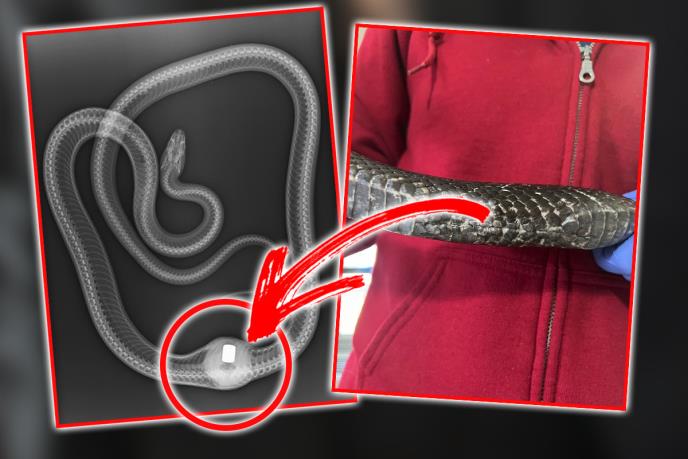 Stručnjaci američkog centra za divlje životinje navikli su na sve i svašta, međutim, zmiju koja je progutala nešto nalik na jaje, što joj je potom probilo želudac i kožu, nikad nisu videli.