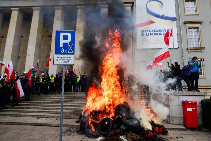 Poljski poljoprivrednici palili su baklje, bacali petarde i gađali jajima kancelariju Evropske komisije u gradu Vroclav na zapadu zemlje, protestujući protiv mera EU u borbi protiv klimatskih promena, rastućih cena i, kako navode, nelojalne konkurencije posebno iz Ukrajine.