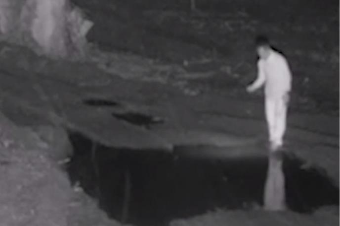 Kamere Graničara su ga tada snimile kako hoda peške po mraku blatnjavom seoskom trakom.