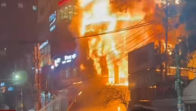 Vatrogasci su rekli da je požar počeo u popularnom restoranu na prvom spratu tržnog centra u frekventnoj trgovinskoj četvrti u centru glavnog grada i da su mnogi bili zarobljeni u požaru.