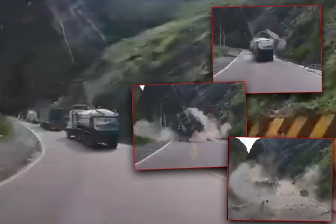 STRAVIČAN SNIMAK ODRONA: Vozač nije stigao ni da shvati šta se dešava STENA RAZNELA TERETNJAKE KAO PROJEKTIL (VIDEO)