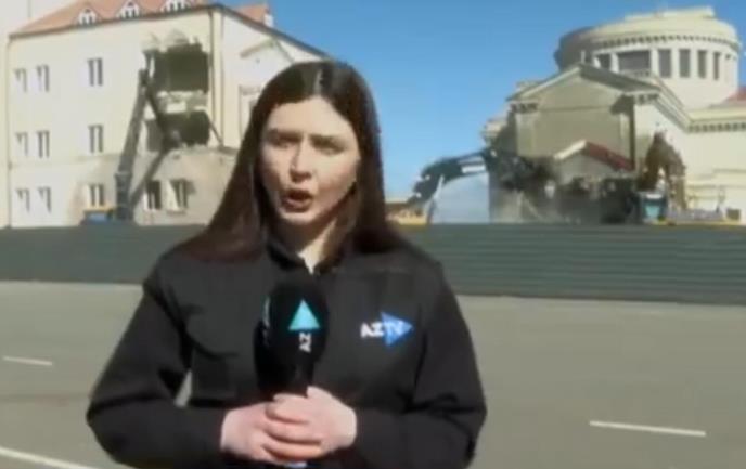 Državna televizija Azerbejdžana emitovala je snimak na kome se vidi kako bageri uništavaju zgradu u kojoj se nekada nalazio parlament nepriznate republike u Stepanakertu.