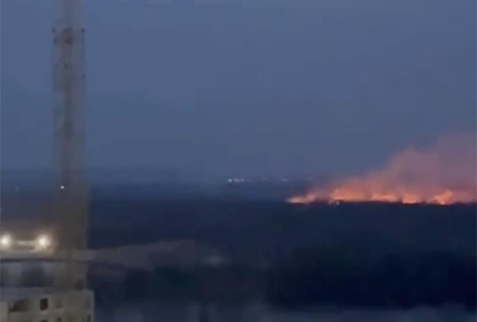 Na snimku se navodno vidi kako gori šuma Osokorki koja se nalazi na jugoistoku ukrajinske prestonice.