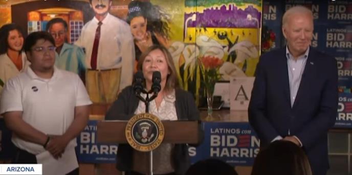 Menadžer Bajdenove kampanje Julie Chaves Rodriguez bila je na bini oko minut nakon svoje kratke uvodne reči kada je predsednik sišao sa bine.