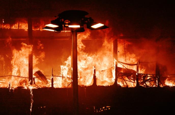 Gornji spratovi dvorane su skoro izgoreli, a društvene mreže su preplavljene snimcima urušavanja krova dvorane.