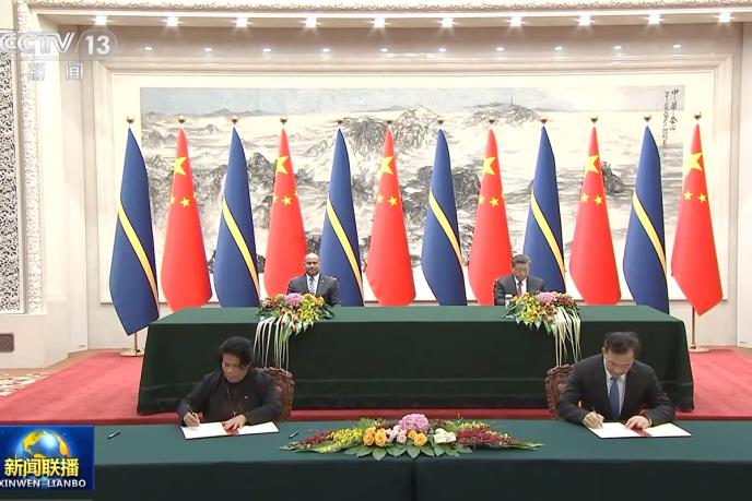 (KMG)--U toku državne posete predsednika Republike Nauru Davida Raniboka Adeanga Kini, zamenik ministra za propagandu CK KPK-a i direktor Kineske medijske grupe Šen Haisijung i zamenik ministra za obrazovanje i pravdu Naurua Dagiago su u Pekingu potpisali Memorandum o produbljivanju saradnje između KMG-a i Ministarstva za medije Naurua.