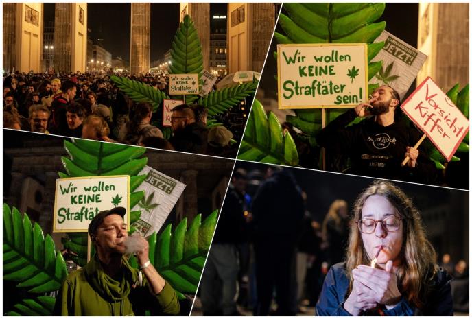 Korisnici kanabisa u glavnom gradu Nemačke , Berlinu, okupili su se u ponedeljak kod Brandenburške kapije da pozdrave novi zakon koji dekriminalizuje ličnu upotrebu ove droge.