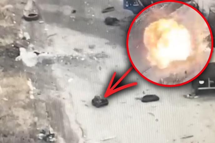 Na snimku se vidi kako dron, provlačeći se između olupina, upada u rupu na mostu nakon čega je odjeknula velika eksplozija. Snimak je inače nastao zapadno od Bahmuta gde je u toku velika ofanziva ruskih snaga.