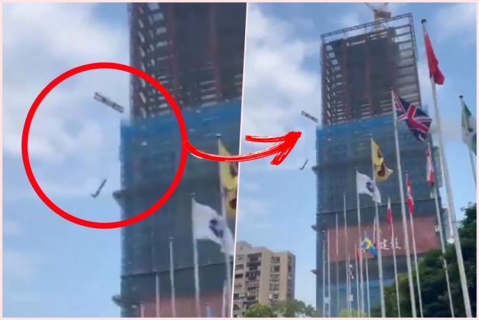 DRMA SE NEBODER U IZGRADNJI, OGROMNI KOMADI METALA PADAJU KA ZEMLJI: Novi dramatični snimak sa Tajvana (VIDEO)