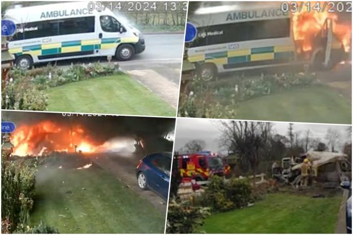 Zastrašujući snimak pokazuje trenutak kada vozilo hitne pomoći eksplodiralo u samo nekoliko trenutaka nakon što su odvezli 91-godišnjeg pacijenta.
