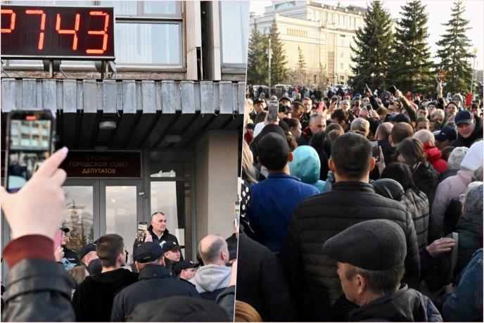 Stotine ljudi okupilo se ispred zgrade uprave u Orsku, javila je ruska državna novinska agencija Tass. Na snimcima objavljenim na ruskim medijskim kanalima vidi se kako ljudi skandiraju „Putine, pomozi nam“ i „sramota“. Na licu mesta bile su i jake snage bezbednosti.