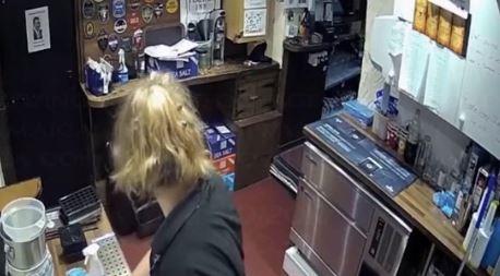 "Konobarica Ejpril, bila je na poslu u nedeljau uveče, a oko pola jedanaest je čistila lokal, kao što se vidi na snimku. Potom je vidite kako okreće glavu jer je čula kako se otvaraju vrata bara, ali niko ne ulazi. U baru nije bilo nikoga, a onda iz drugog ugla vidite kako se telefon koji je na zidu podigao, preleteo i spustio. To ju je uplašilo, ali osoblje paba je tako naviklo na ovakve stvari."