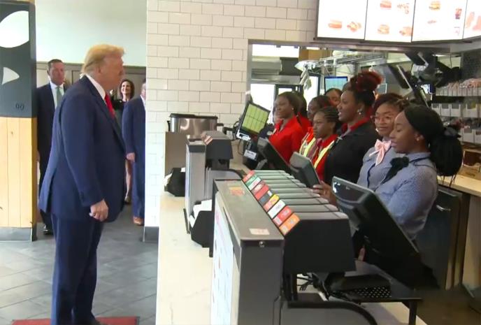 Tramp je svratio u Čik-fil-A pitstop na putu ka akciji prikupljanja sredstava za kampanju u Bakhedu u Džordžiji.