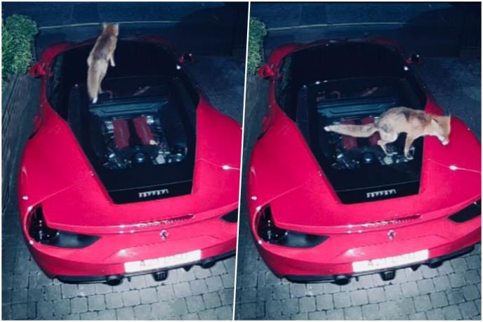 Sigurnosne kamere su zabeležile neverovatan trenutak kada se lisica popela na Ferari vredan 200.000 evra a zatim izvršila veliku nuždu.