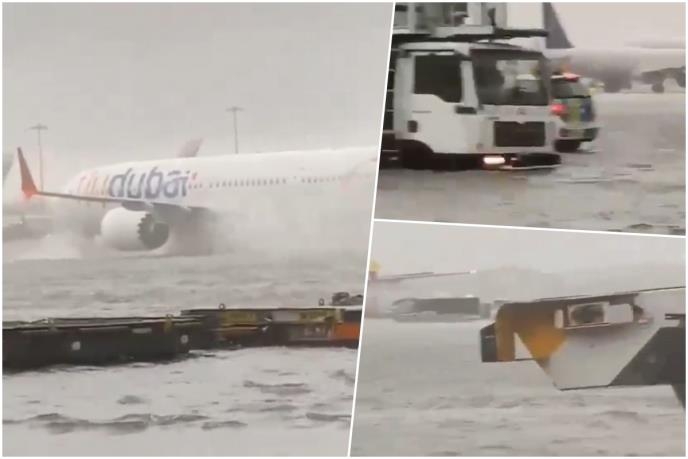 Jako nevreme praćeno obilnom kišom pogodilo je danas Dubai, a na mrežama su se pojavili zastrašujući snimci na kojima se vidi obilna kiša koja je napadala, zbog koje se avion jedva kreće po pisti.
