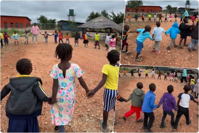 Marija Zorka Vasilj, mlada volonterka iz Hrvatske, snimila je u jednom kampu u Zambiji kako lokalni mališani igraju uz popularnu dečiju pesmicu "Ringe, ringe, raja".