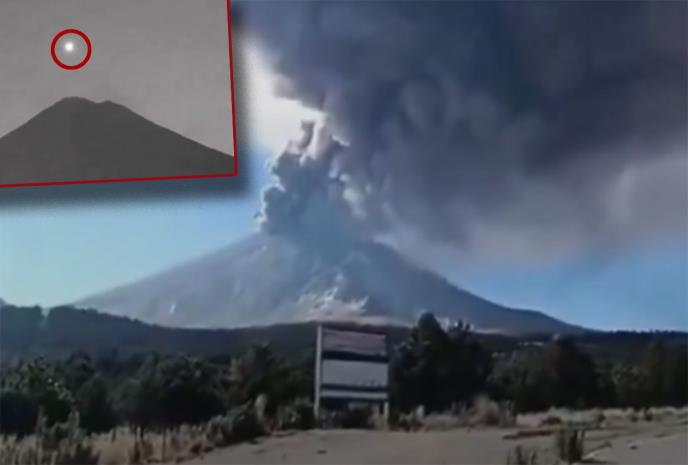 Nadzorna kamera snimila je nepoznati leteći objekat kako se približava vulkanu i na snimku deluje da je spustio tačno u krater. Na snimku se jasno vidi i da se sjaj misterioznog objekta pojačava kako se približava krateru iz koga izbija gust dim.