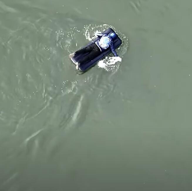 Državna granična služba objavila je snimak 39-godišnjeg muškarca kako leži potrbuške na dušeku i rukama vesla kroz vodu. Bio je potpuno odeven, nosio je duksericu, duge pantalone i patike dok je nosio ranac.