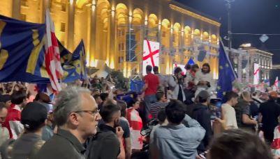 Gruzijski mediji saopštili su da se situacija ispred parlamenta zakomplikovala. Demonstranti su pokušavali da dođu do pozornice koja je postavljena za današnji skup vladajuće stranke Gruzijski san. Pozornicu je čuvala policija, zbog čega je došlo do manjeg sukoba. Demonstranti su uklonili deo barijere postavljene ispred zgrade.