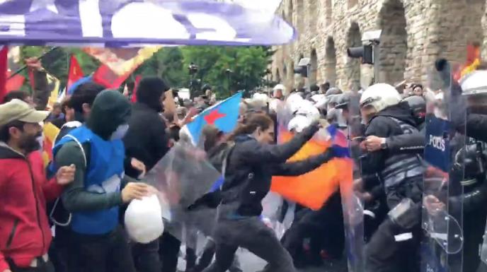 Na snimcima turskog Si-En-Ena vidi se postupanje policije i tuča koja je izbila između policije i demonstranata. Bezbednosne snage su u nekoliko redova blokirale put ka trgu Taksim, a ministar unutrašnjih poslova Ali Jerlikaj rekao je da je privedeno 210 ljudi.