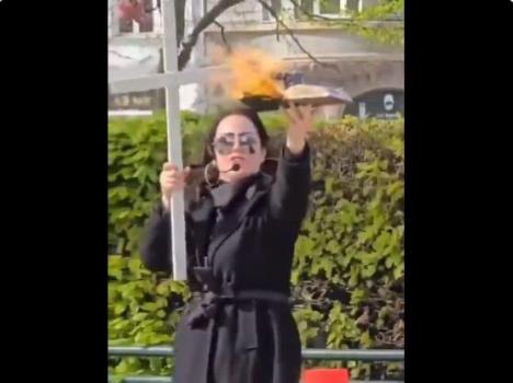 Pre paljenja, žena je bacala muslimansku svetu knjigu na put, šutirala je, nakon čega ju je uzela u ruke i počela da cepa njenu unutrašnjost.