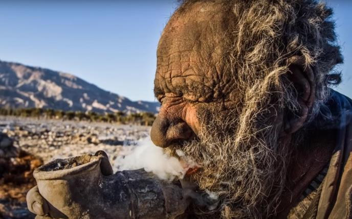 Ovaj 94-godišnjak je živeo između rupe u zemlji i zidane kolibe koju su izgradili meštani u iranskom selu Dejgah, a takođe je imao neortodoksan pristup jelu i piću .
