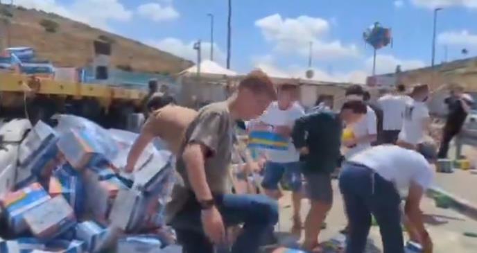 IZRAELCI ZAUSTAVILI JOŠ JEDAN KAMION KOJI JE PREVOZIO HUMANITARNU POMOĆ ZA GAZU: Demonstranti GAZILI pakete sa hranom (VIDEO)
