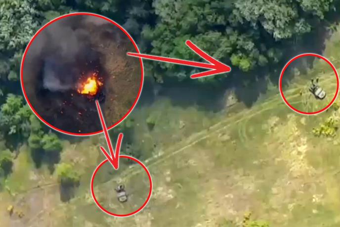 Telegram kanal Arhangel Specnaza objavio je snimak na kome se vidi kako dron kamikaza kod sela Lipci u Harkovskoj oblasti pogađa RAK-SA-12 koji se navodno nalazi na šasiji američkog "hamvija".