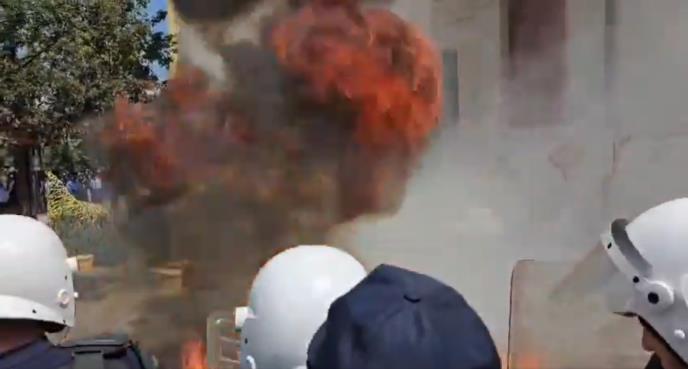 Na sreću, molotovljevi kokteli nisu pogodili policajce, ali su eksplodirali na ulaznim stepenicama Gradske skupštine.