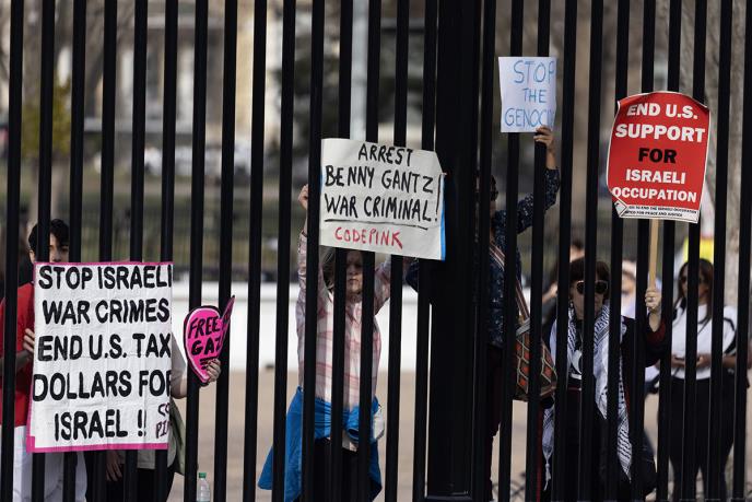Najmanje osam zvaničnika napustilo je administraciju predsednika Džoa Bajdena navodeći kao razlog svoje protivljenje njegovoj politici. Demonstranti su takođe prekinuli neke događaje Bajdenove kampanje za reizbor.