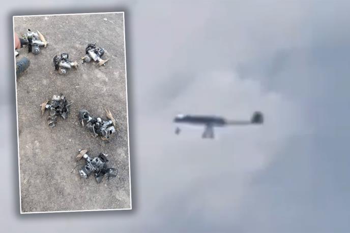 Na snimku se vidi let ukrajinskog drona minut pre pada i delovi rasuti na zemlji.