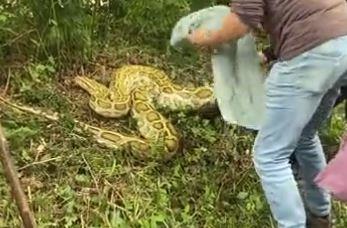 Gmizavaca dugog preko 4 metara su na kraju uhvatila trojica muškaraca kojima je trebalo četiri sata da ga bezbedno ubace u kombi.