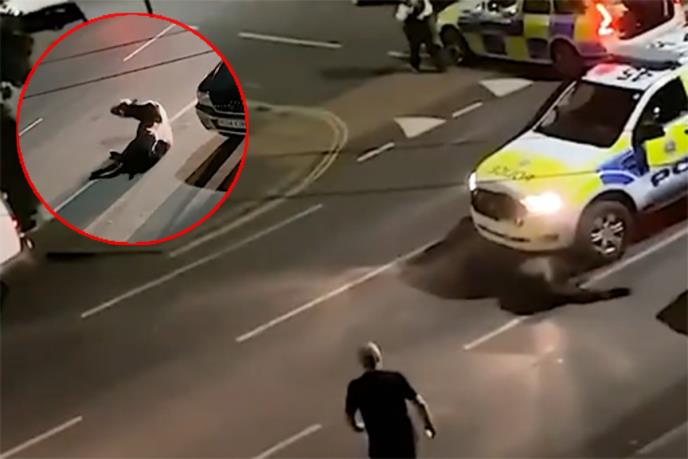 Očevidac Kai Benet navodi da je bio zgrožen kad je video kako vozilo policije naleće na životinju koja je zadobila otvorene rane nakon što je bačena nekoliko metara niz ulicu.