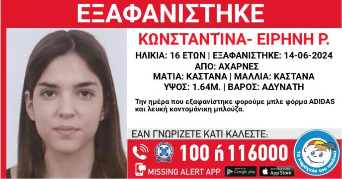 Grčke vlasti tragaju za devojčicom Konstantinom-Irini R. (16), koja je nestala iz predgrađa Aharnes u Atini.