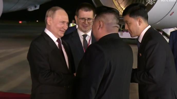 Avion ruskog lidera Il-76 sleteo je na aerodrom u Pjongjangu oko tri sata ujutru po tamošnjem vremenu gde ga je dočekao lično severnokorejski lider Kim Džong Un.