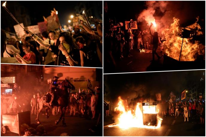AP je objavio video snimak na kojem se okršaj sa policijom demonstranata koji su tražili i ostavku vlade premijera Benjamina Netanjahua.