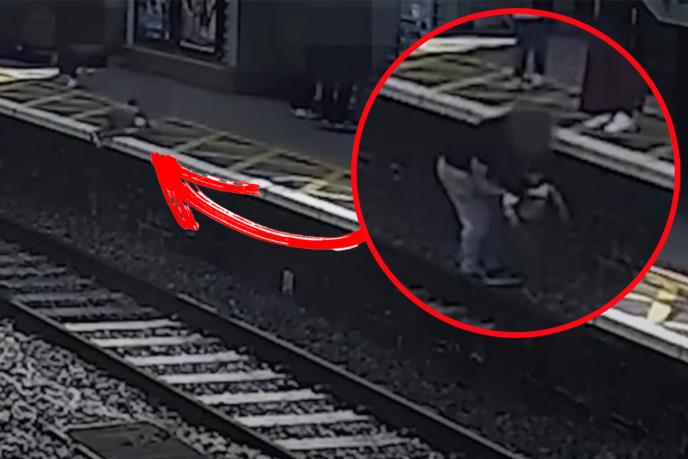 Viralan snimak prikazuje heroja koji na putu ka poslu skače na železničke šine kako bi spasio mališana, a samo 22 sekunde nakon toga voz je tuda projurio.