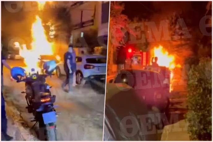 POLICAJAC ZAPALJEN U ATINI! Čuvao kuću predsednice suda, napadači ubacili Molotovljev koktel čim je seo u PATROLNO VOZILO (VIDEO)