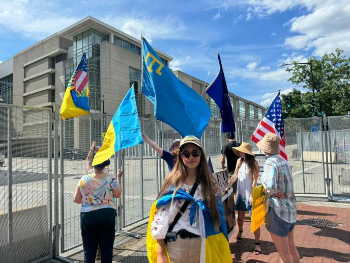 - Ovde sam da podržim članstvo Ukrajine u NATO. Ja sam rođena Ukrajinka i napustila sam svoju zemlju kad je počela ruska agresija - rekla je, između ostalog, ova lepa devojka našoj novinarki u Vašingtonu.