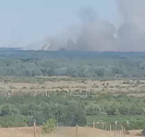 Na snimku se vidi oblak dima koji se diže u nebo. Kako su vlasti pojasnile, na mestu nesreće u Serafimovičkom okrugu u blizini farme Krasnojarski, zapalila se suva trava na površini od 15 hektara. Spasioci su požar ugasili u 17 časova po moskovskom vremenu.