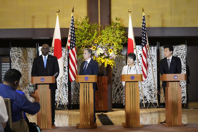 Japanski i američki šefovi odbrane i visoke diplomate složili su se na sastanku u Japanu da dalje jačaju vojnu saradnju unapređenjem komande i kontrole američkih snaga u toj istočnoazijskoj zemlji, kao i jačanjem proizvodnje raketa po američkoj licenci, opisujući rastuću pretnju iz Kine kao "najveći strateški izazov".