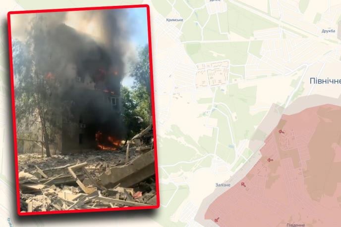 Na društvenim mrežama pojavio se i snimak kako je vazdušna bomba pogodila višespratnicu u Torecku.