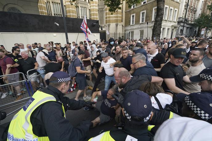 Više od 100 ljudi je uhapšeno u Londonu sinoć tokom protesta zbog tog napada. Na protestu se okupilo hiljade ljudi, među kojima je bilo dosta pristalica desničara, u blizini premijerove rezidencije u Dauning stritu, uzvikujući "Spasite našu decu", "Želimo nazad svoju zemlju" i "Zaustavite brodove", aludirajući na problem s tražiteljima azila.