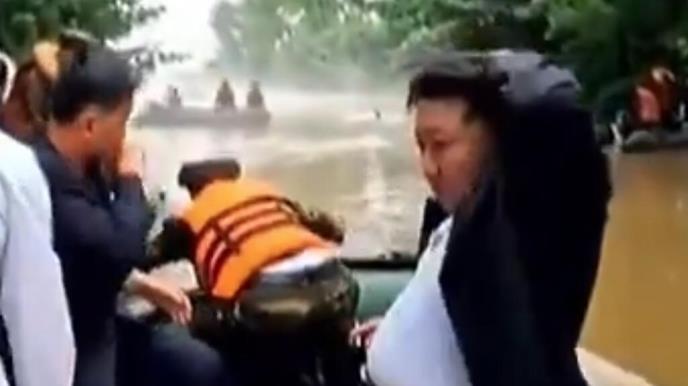 Severnokorejski lider Kim Džong Un udario je čamcem na naduvavanje u drvo tokom operacije spasavanja u poplavljenim selima, navodi se u video-snimku koji je objavio Tajms of Indija.