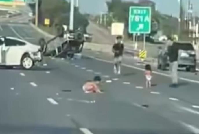 MALIŠANI U PELENAMA ISPALI IZ AUTOMOBILA KOJI SE PREVRNUO: Jeziva scena, dete pokušava da ustane, prolaznici TRČE U POMOĆ (VIDEO)